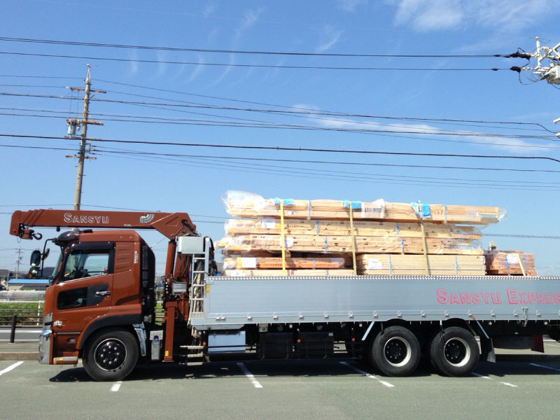 有限会社三洲運輸では移動式クレーン付きトラックにて、住宅資材、鉄骨資材等の運送物をご指定の場所までお届けさせていただきます。
